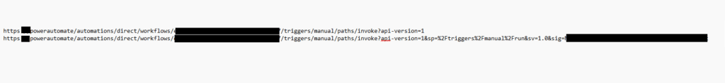 I had a couple of flows where this option was set to Any user in my tenant, but that was causing the URL to be different than when set to Anyone. Below you can see the two URLs compared. The first one is the Any User in my tenant, which does not generate the last bit of the URL, including the SIG. The SIG is a SAS token generated by the platform. When changing the setting to Anyone, it does generate, and when pasting that URL in the environment variable, the Power Automate Flow is triggered again.
