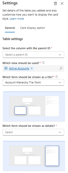 - Which form should be shown as details? The form that will be used when clicking on a tile in the visual hierarchy