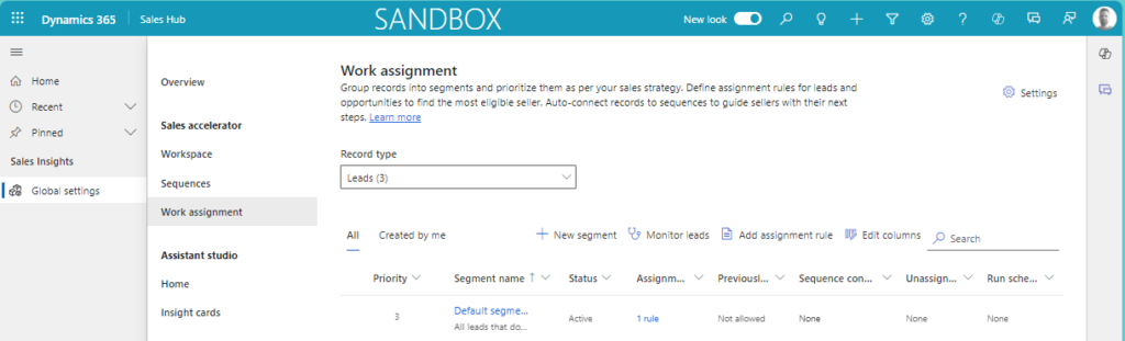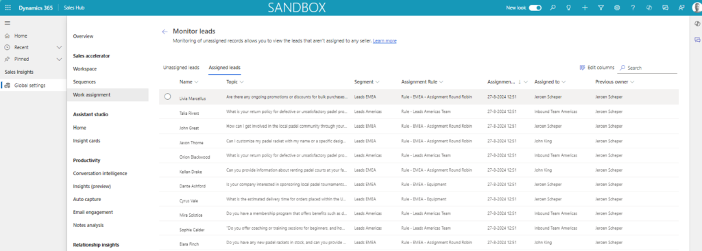 As mentioned in the beginning, the sequence we skip for now and will explain this in more detail in a future post since this blog post is mainly focussing on the automated assignments. In the Segmented Leads section, you can see to which sellers (owner) the leads have been assigned to for that segment.